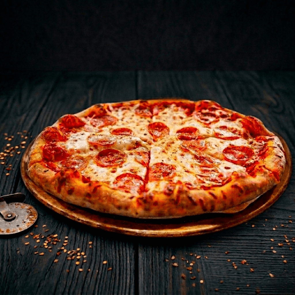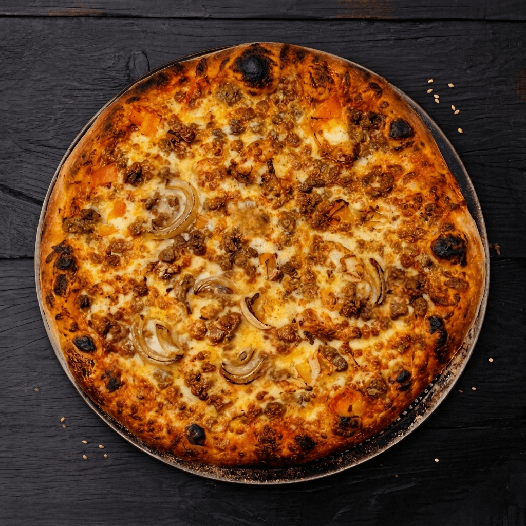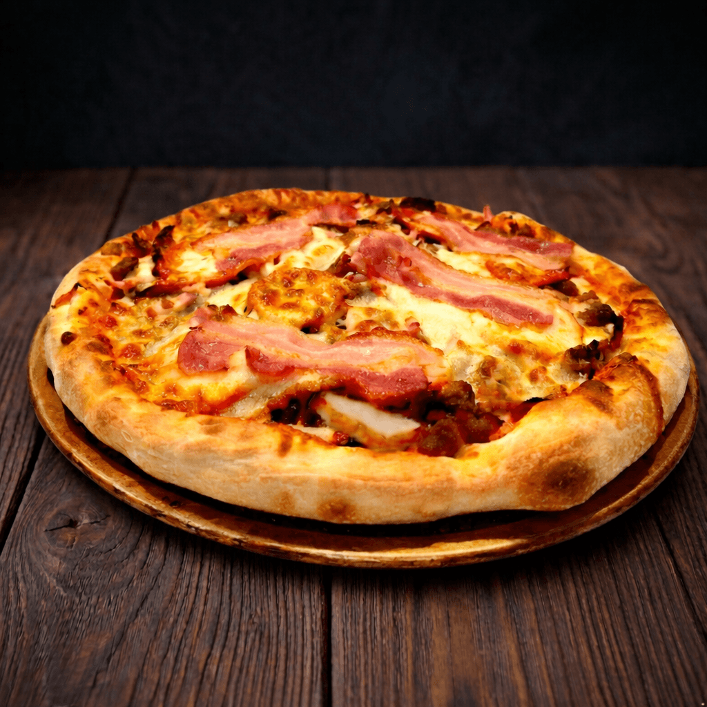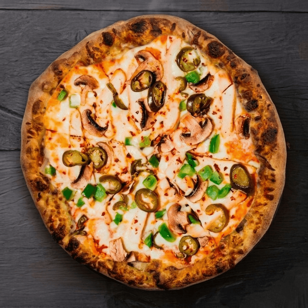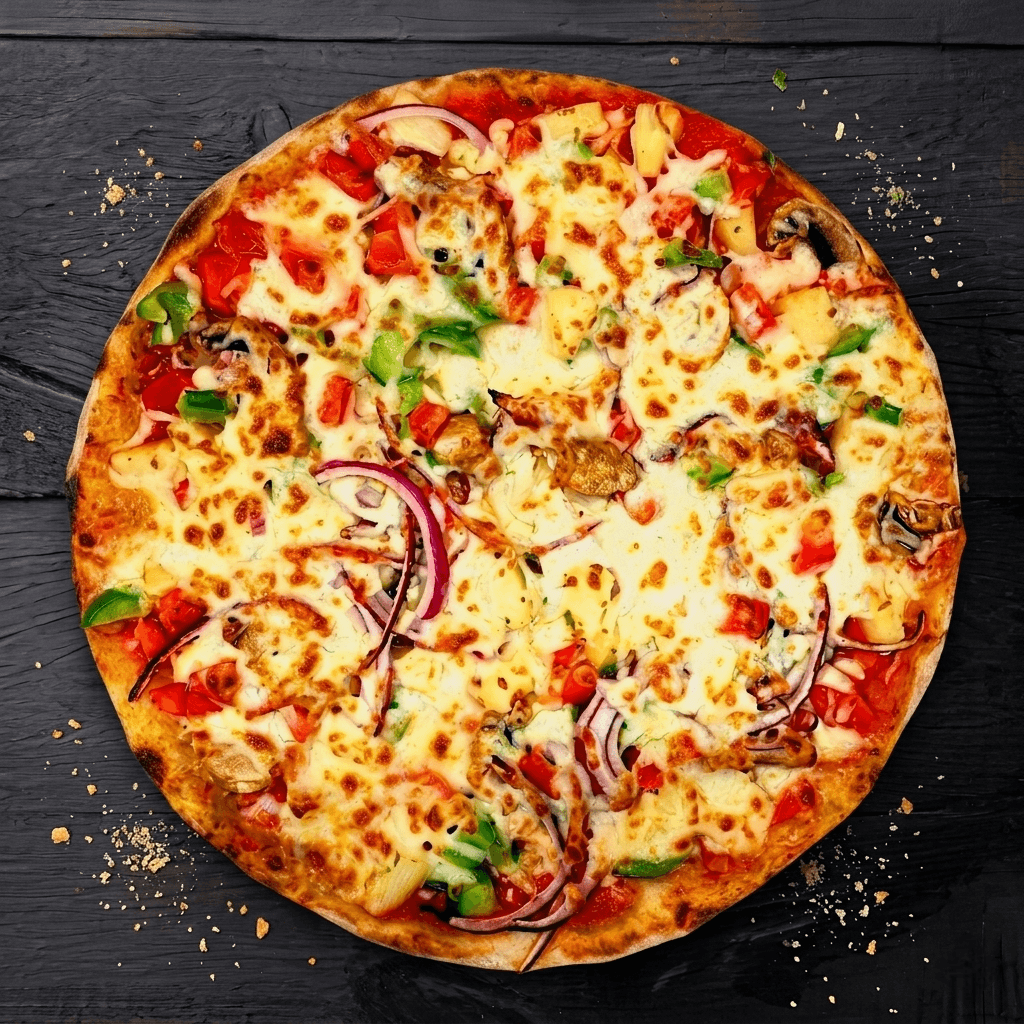 Ost, Tomatsós, Oksakjøt, Hvítleyksolja, Skinka, Høsnarungi, Pepperoni, Chil