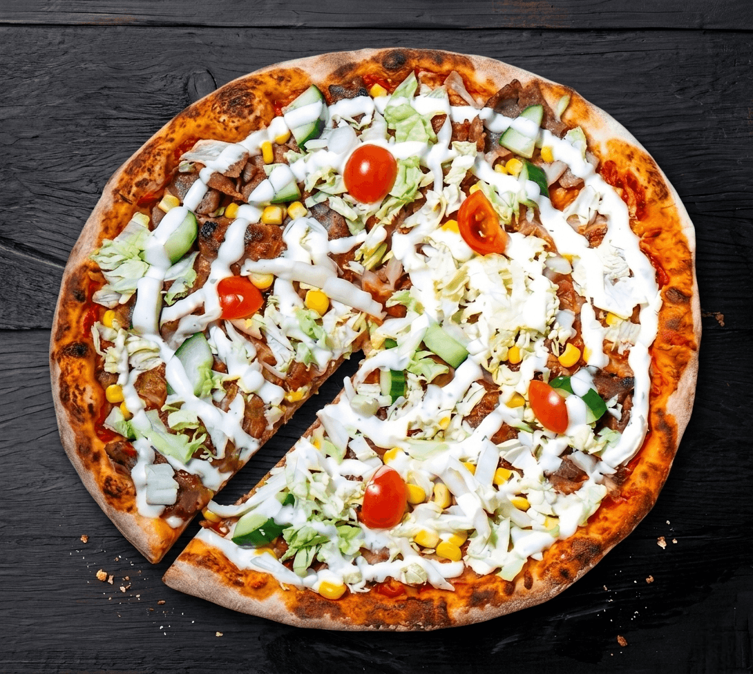 Ost, Tomatsós, Oksakjøt, Skinka, Høsnarungi, Shawarma, Pepperoni, Bacon